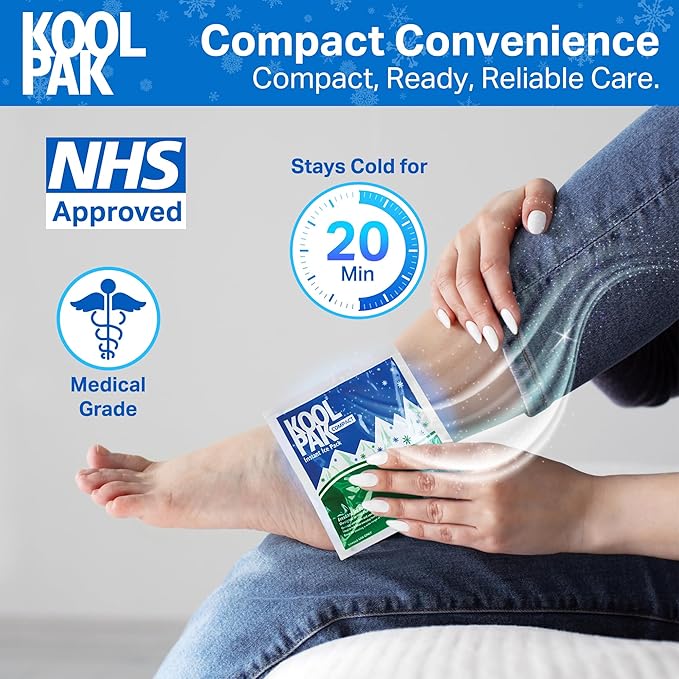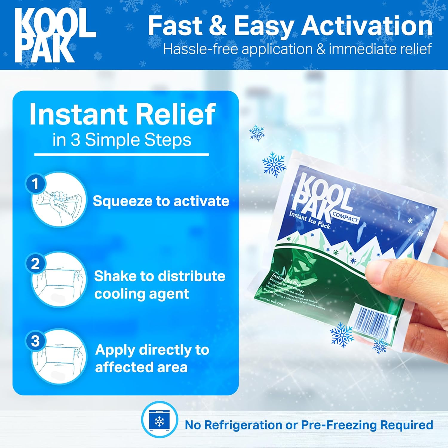 Koolpak 20 x Compact Instant Cold Ice Packs – 15 x 15 cm Disposable Instant Ice Pack for Injuries – Single Use First Aid Ice Packs for Sports & Recovery.